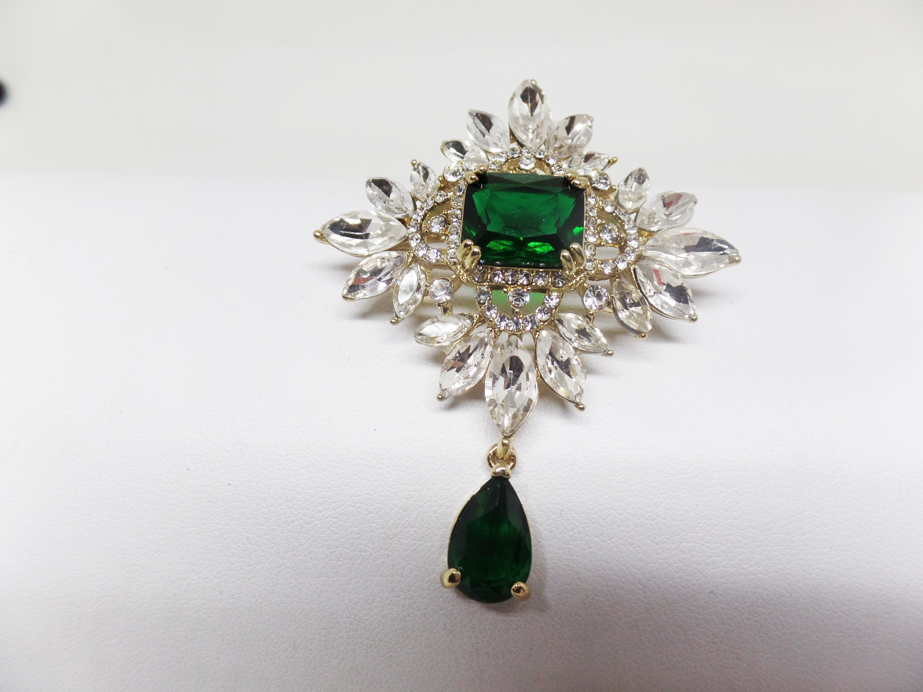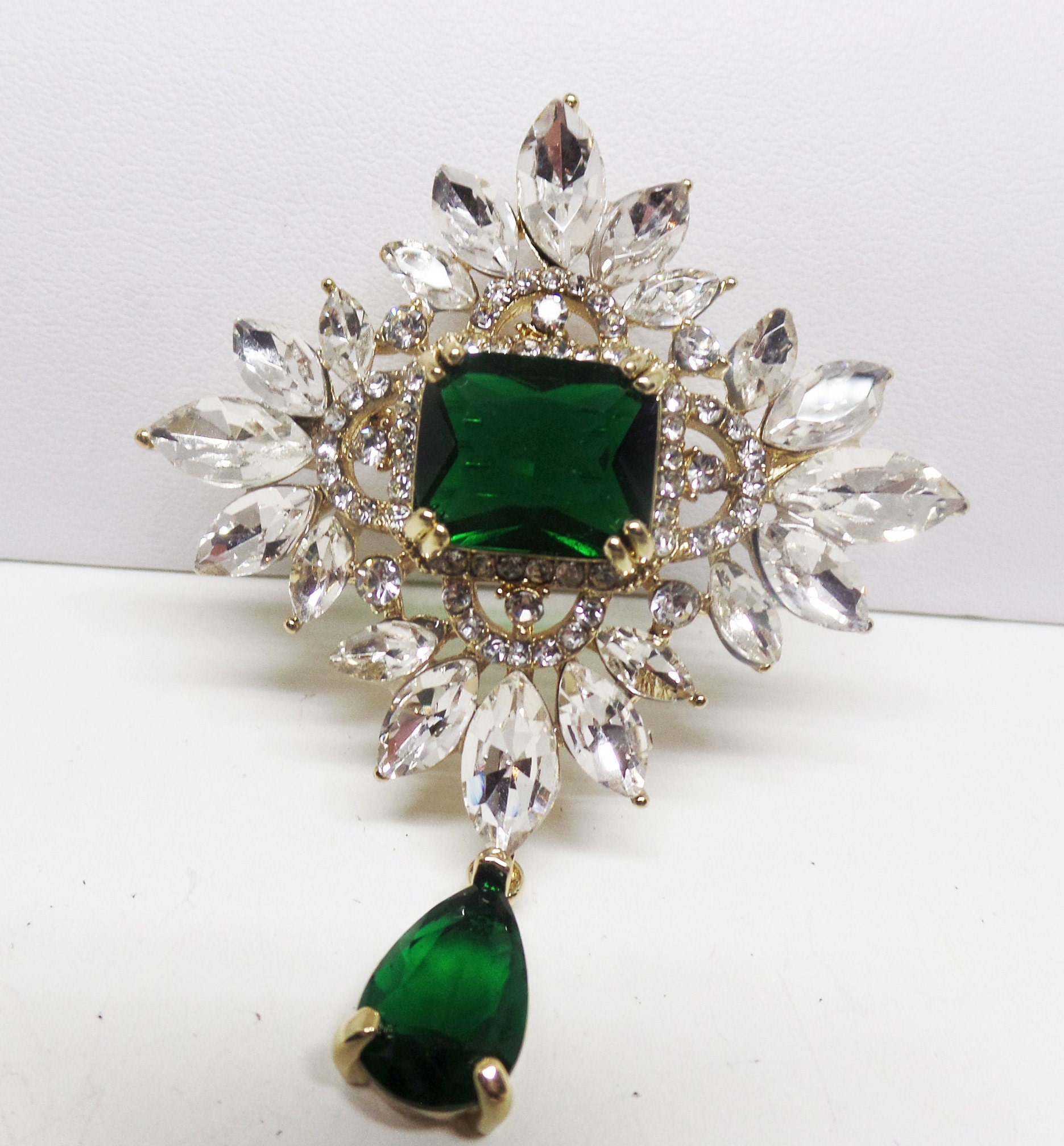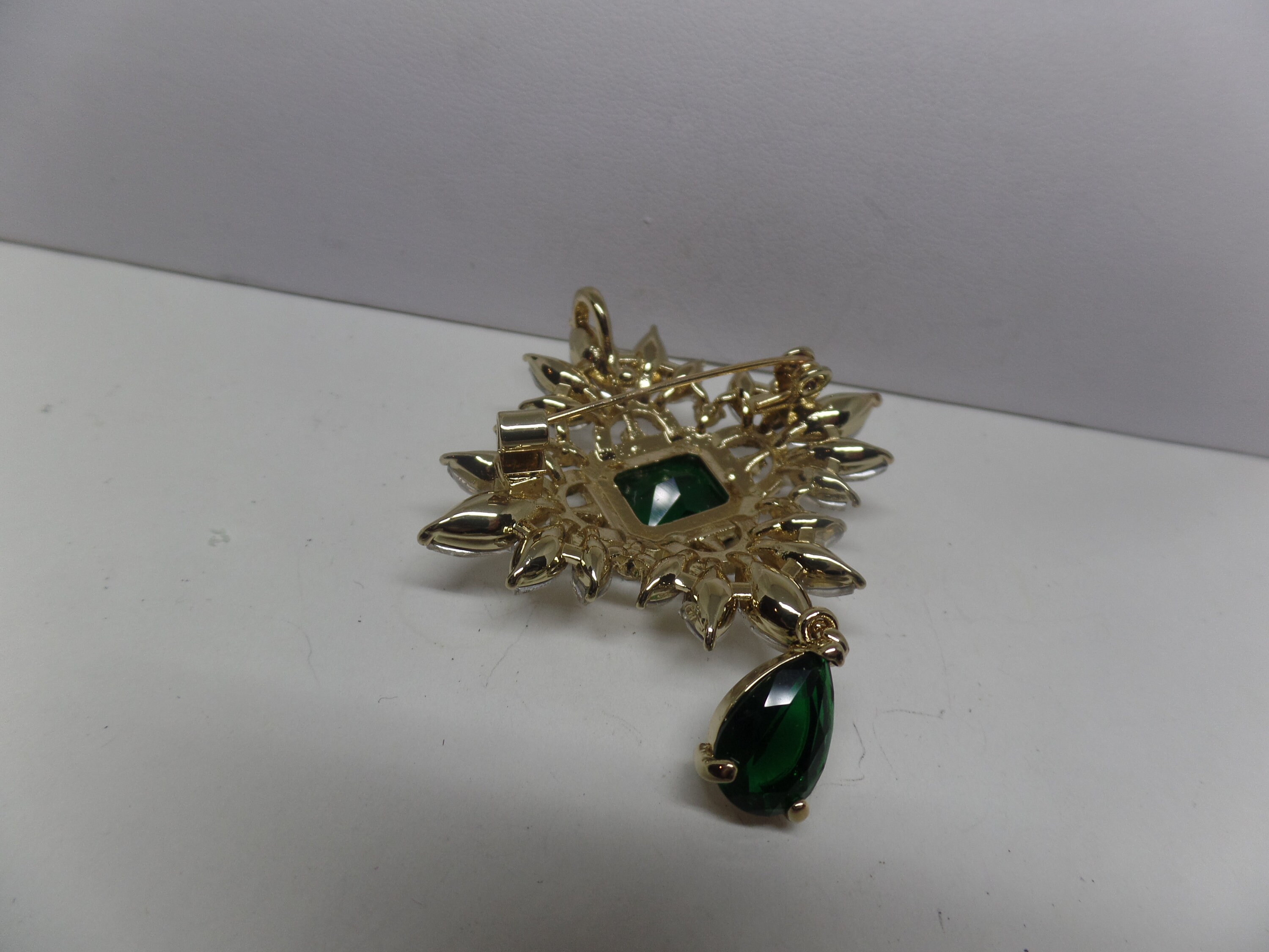 Emerald Cut Green Crystal Drop Winter Holiday Christmas Brooch Pin