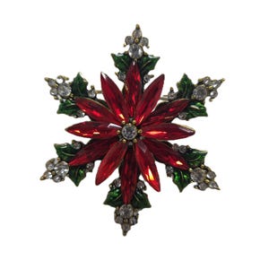 Red and Green Enamel Crystal Peppermint Candy Holiday Brooch Pin