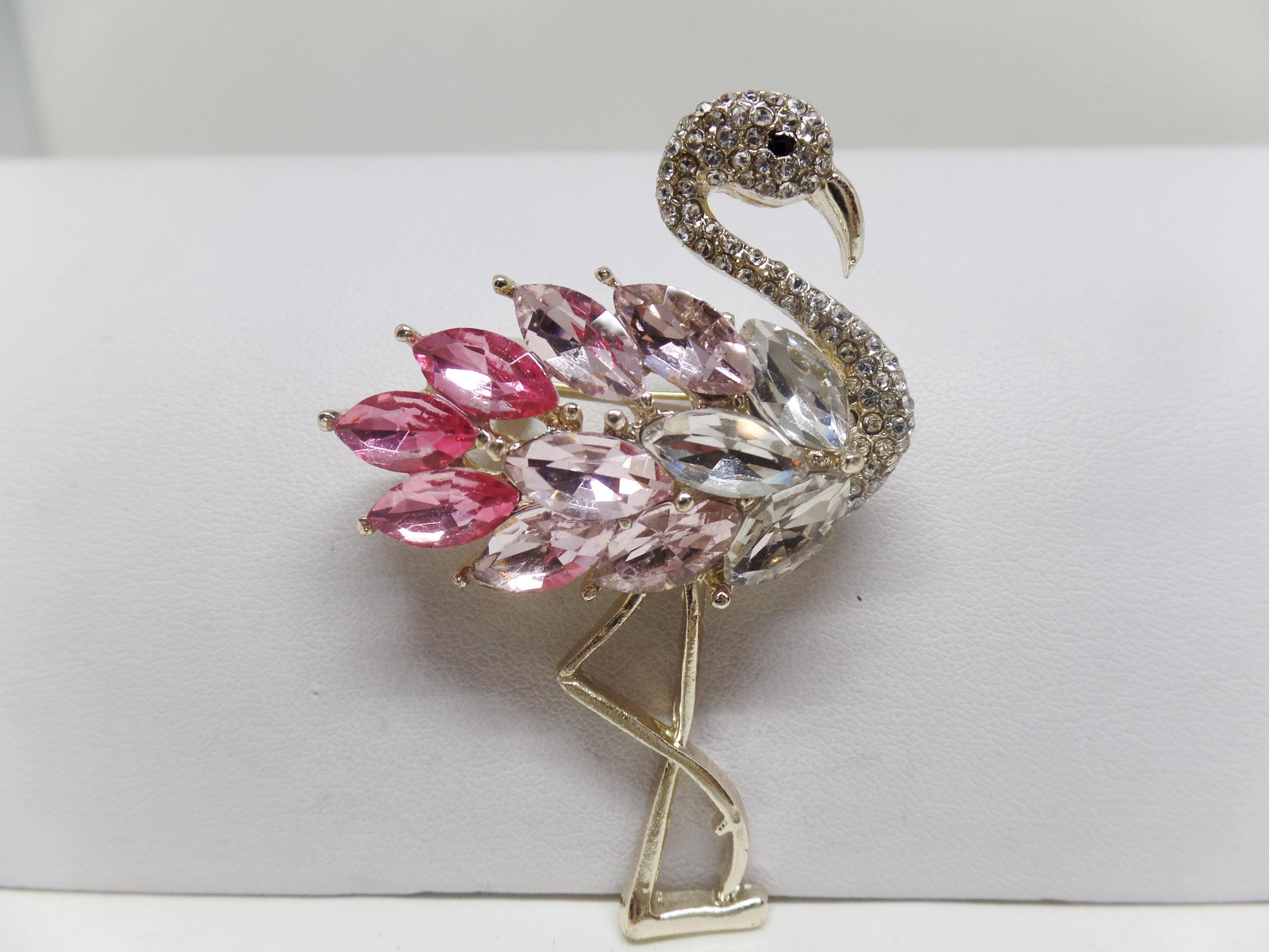 We are pleased to introduce our crystal flamingo brooch! 2-1/4"Long.