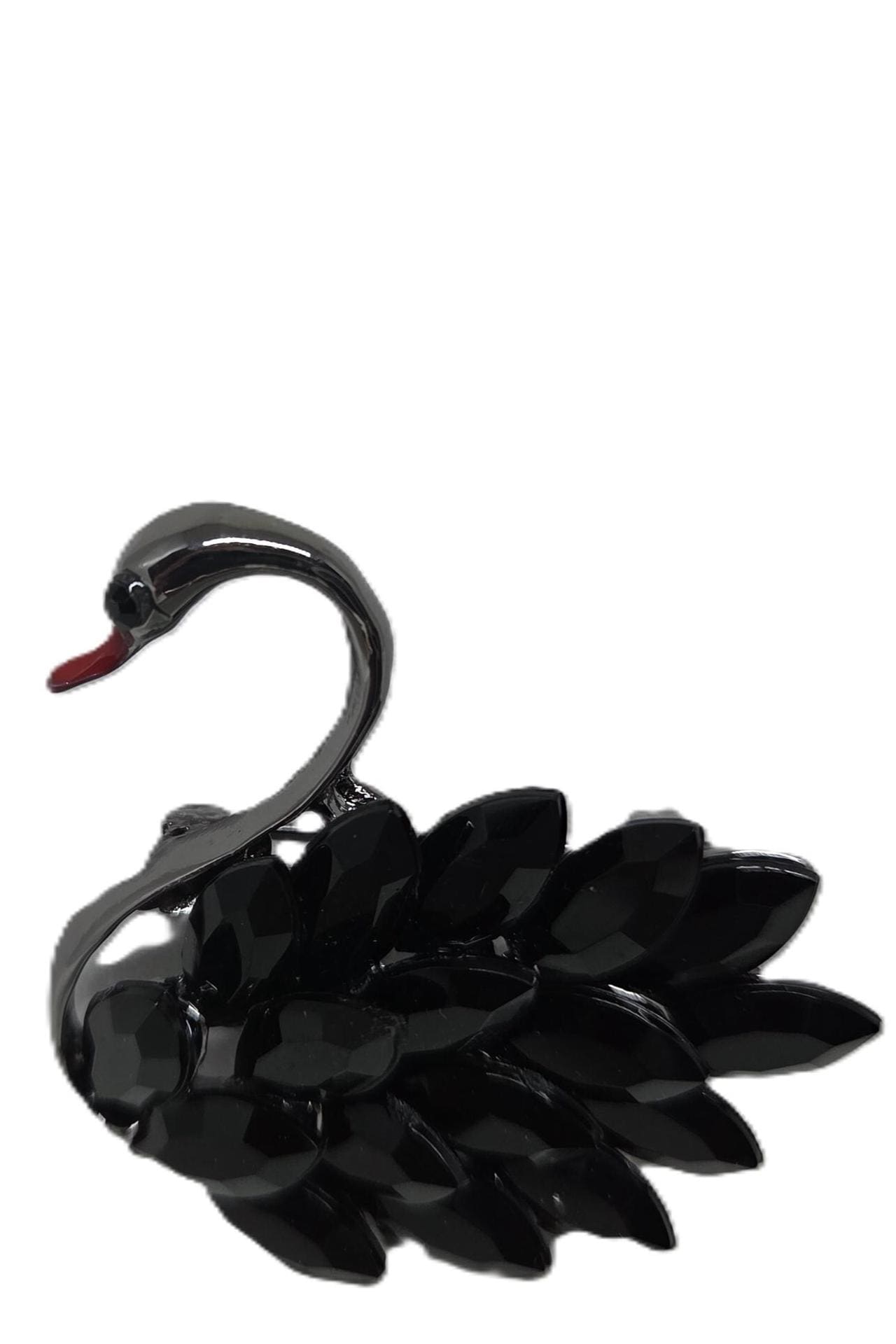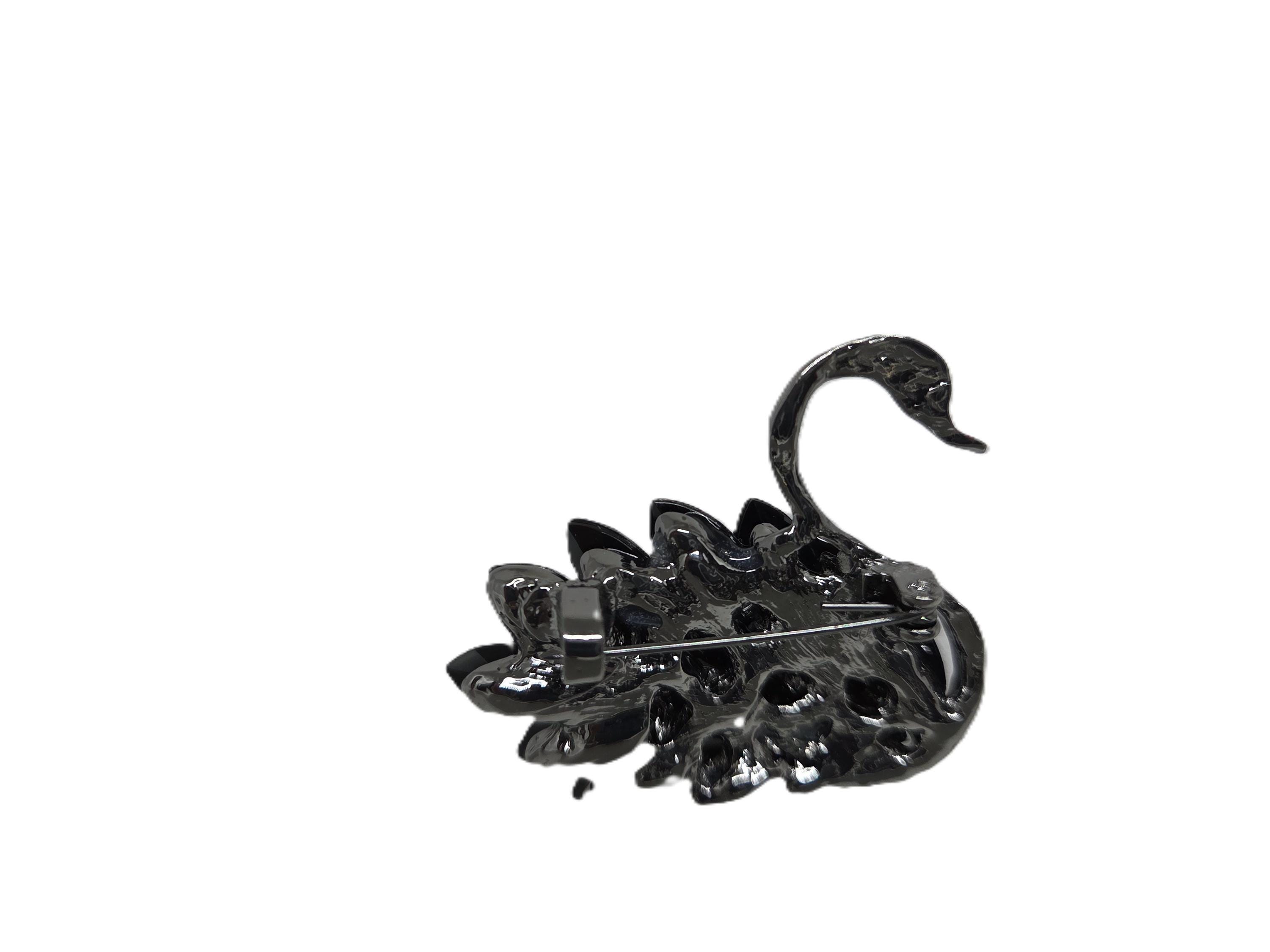 Black Crystal Swan Brooch Pin: Elegant Bird Jewelry