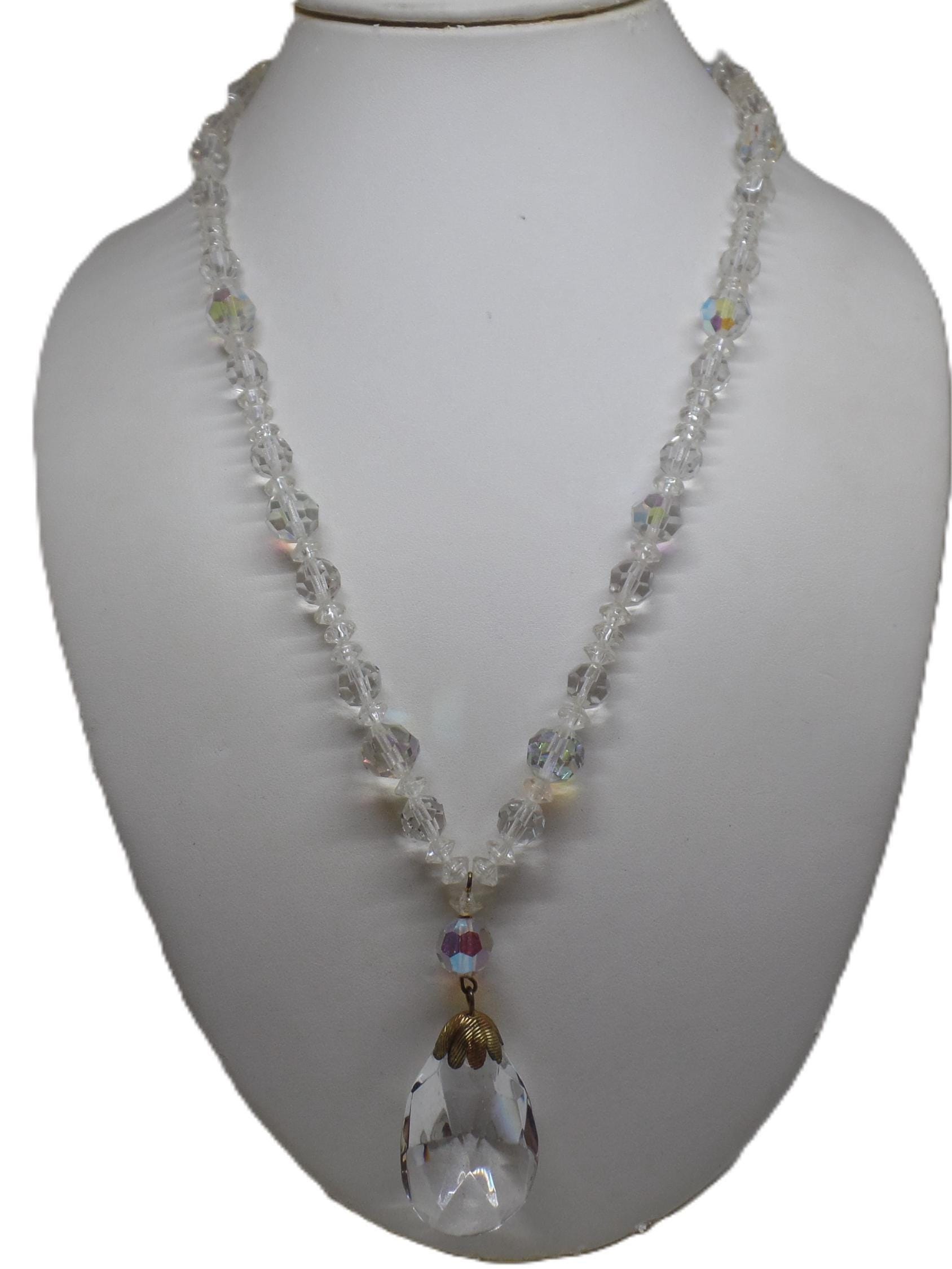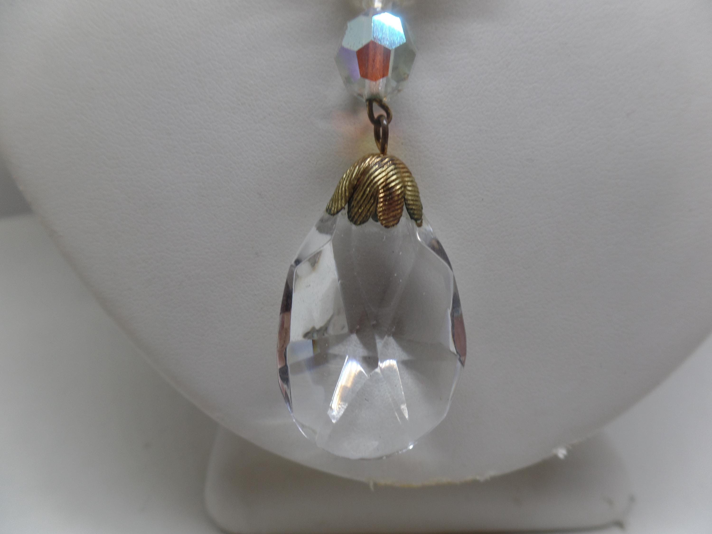 Vintage Aurora Borealis Crystal Beaded Tear Drop Necklace