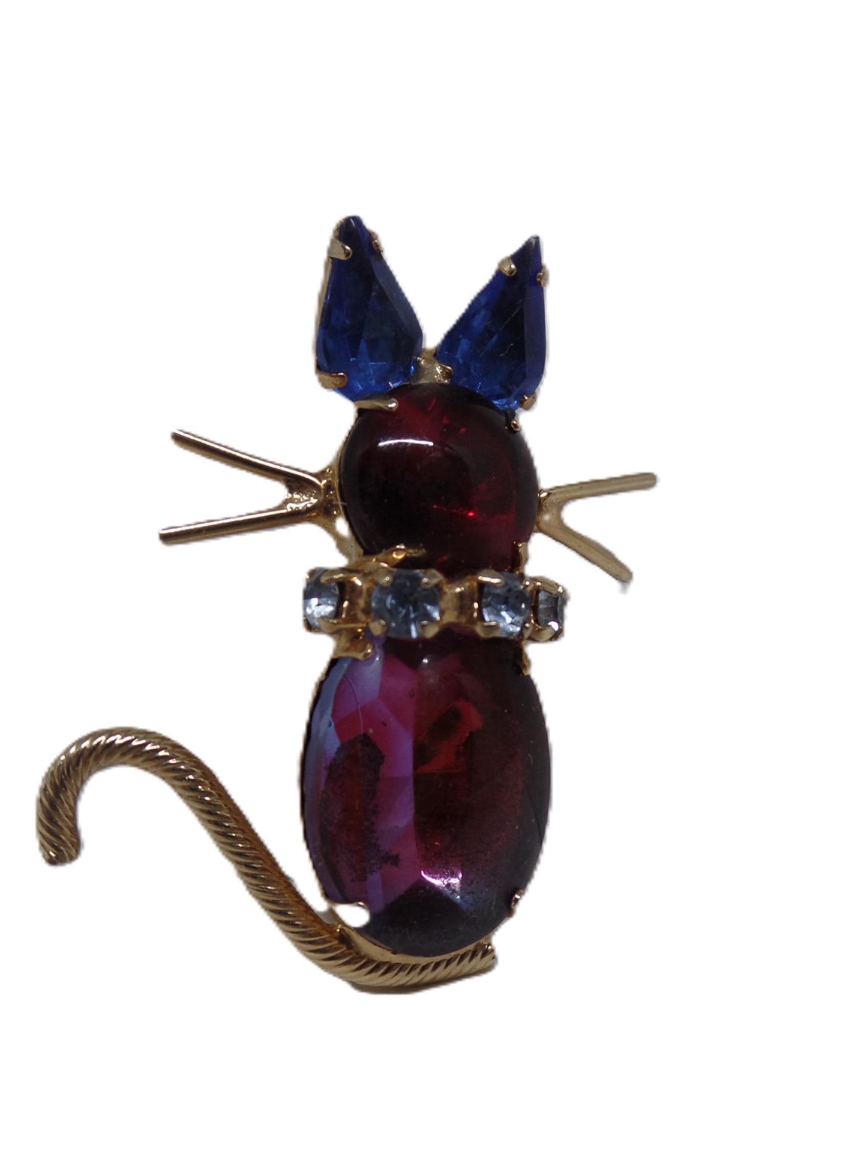 Vintage Purple and Red Cabochon Cat Brooch Pin