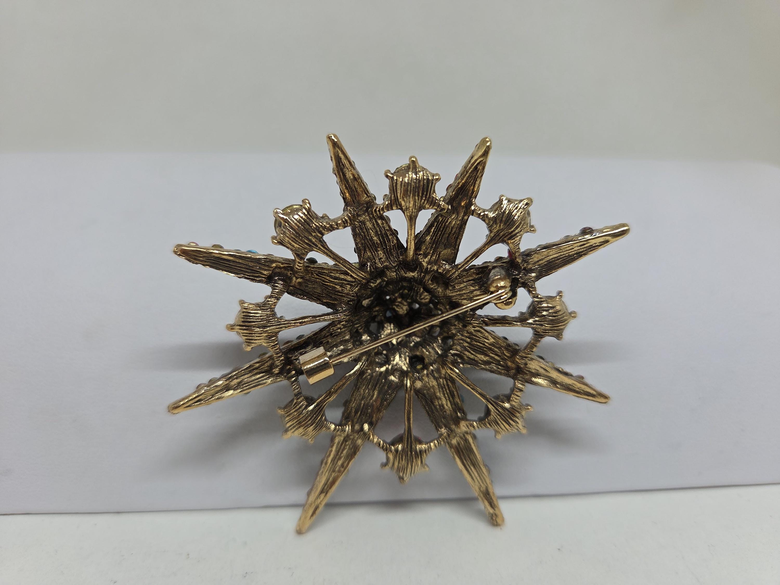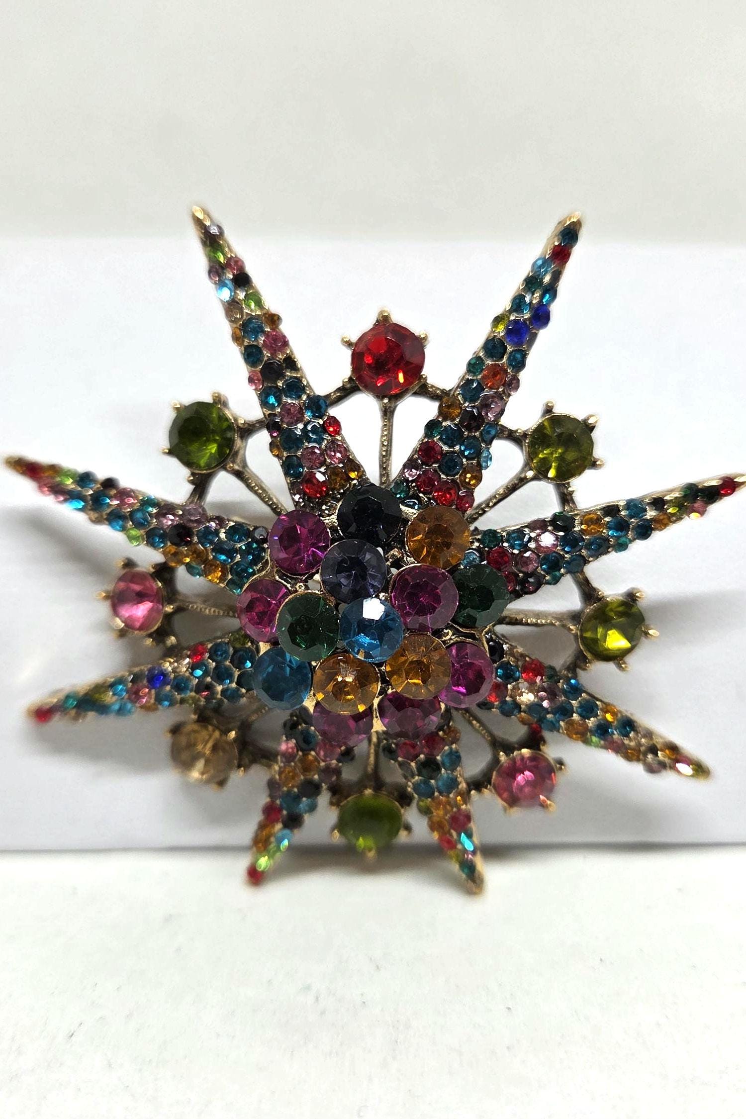 Multi Color Crystal Star Burst Brooch Pin