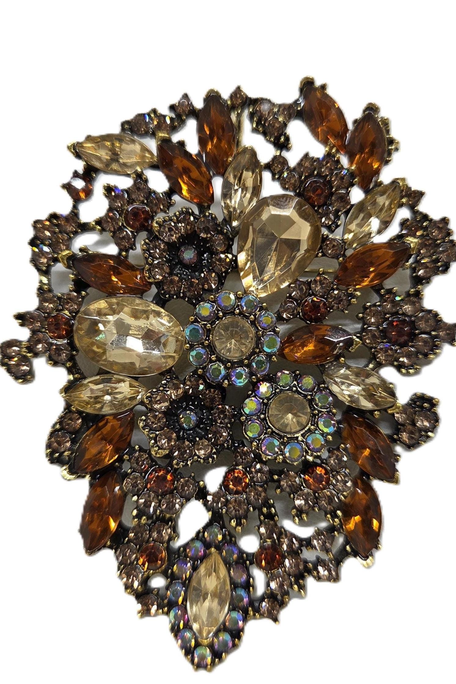 Topaz Aurora Borealis Crystal Flower Brooch Pin Pendant