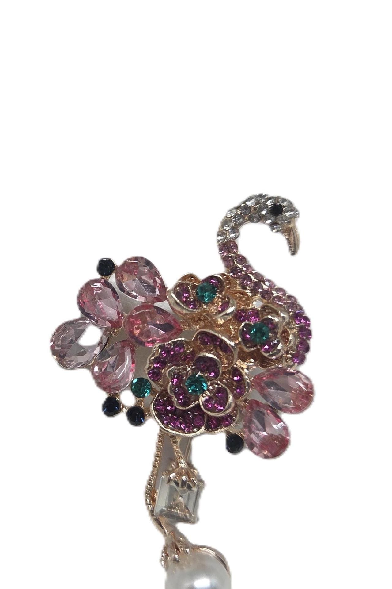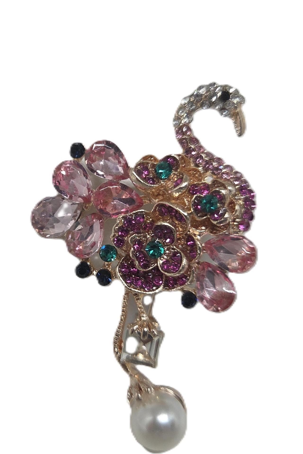 We are pleased to introduce our crystal flamingo brooch! 2"Long.