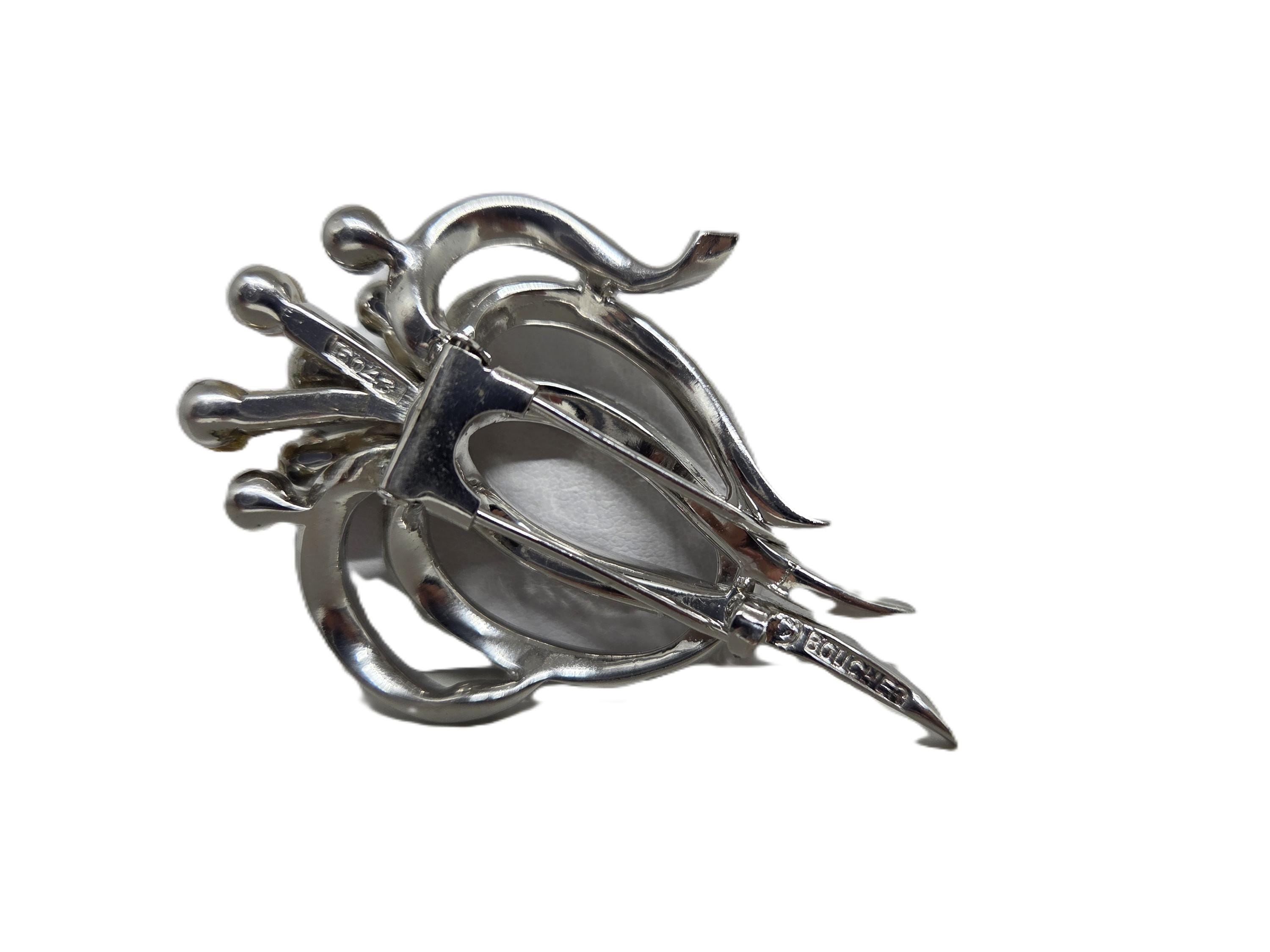 Vintage BOUCHER 604B Signed Baguette Crystal and Pearl Fur Clip Brooch!