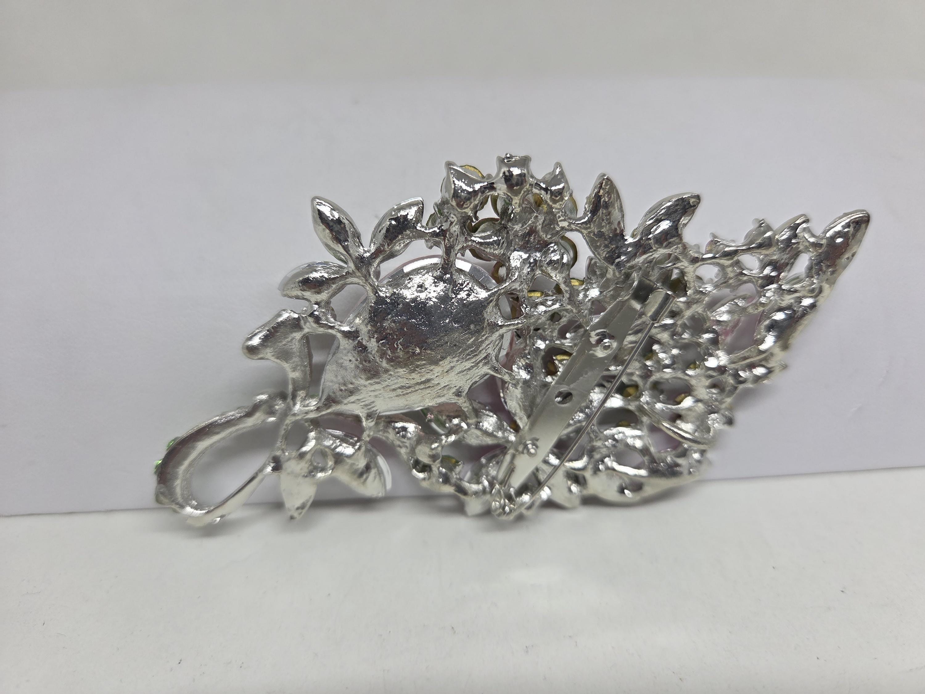 Pink and Green Aurora Borealis Crystal Flower Wicked Brooch Pin Pendant