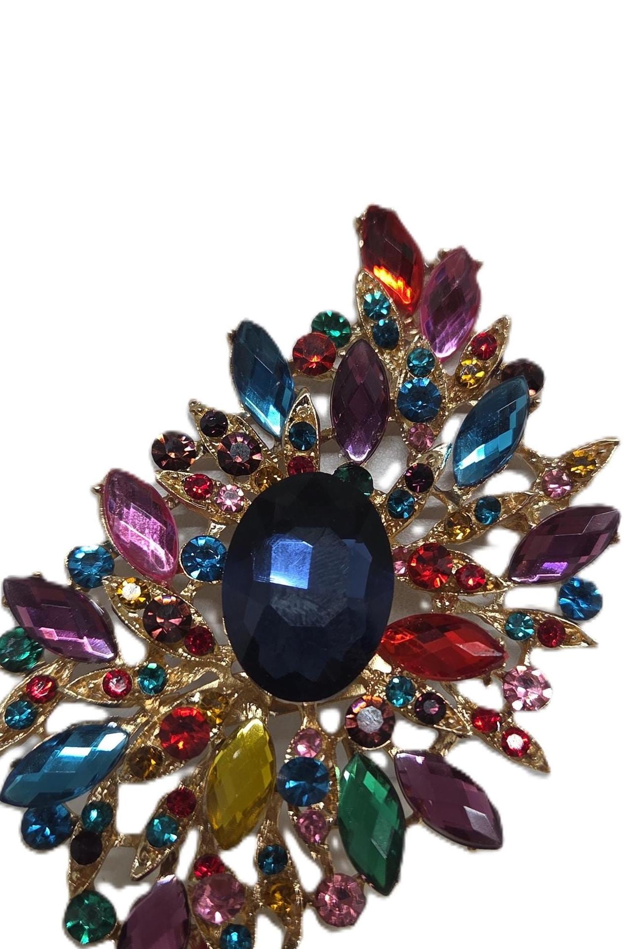 Multi Rainbow Crystal Massive Statement Brooch Pin Pendant
